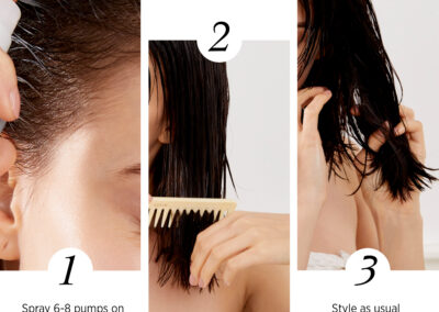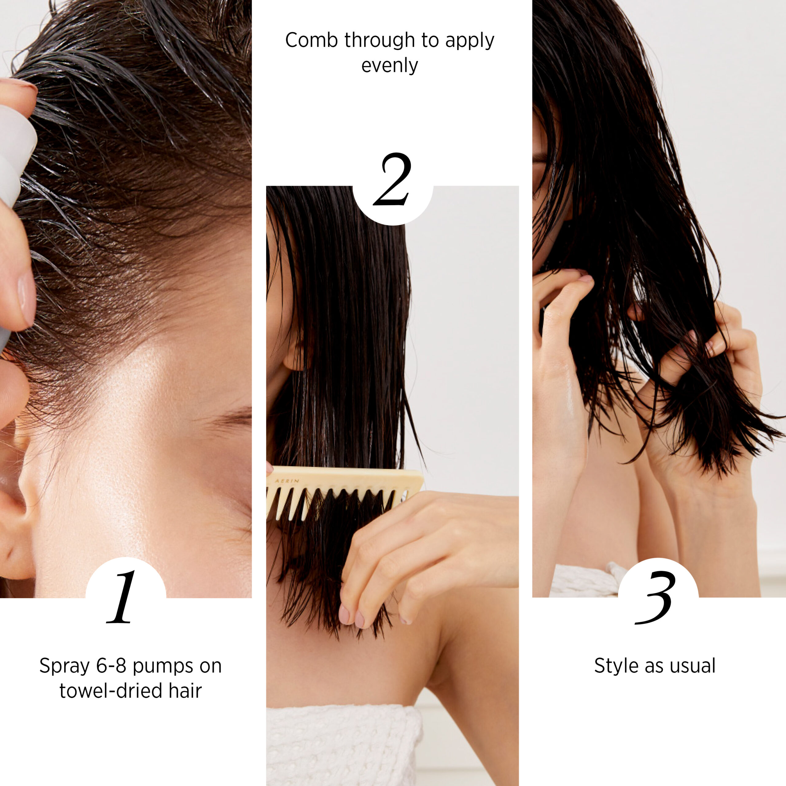 Spray-ul zilnic pentru hidratare și descurcare poate fi folosit ca parte a oricărui ritual de îngrijire pentru un plus de hidratare. Efectul imediat este de a oferi catifelare și de a face părul mai ușor de pieptănat, în timp ce părul se simte mătăsos și nu este supraîncărcat.