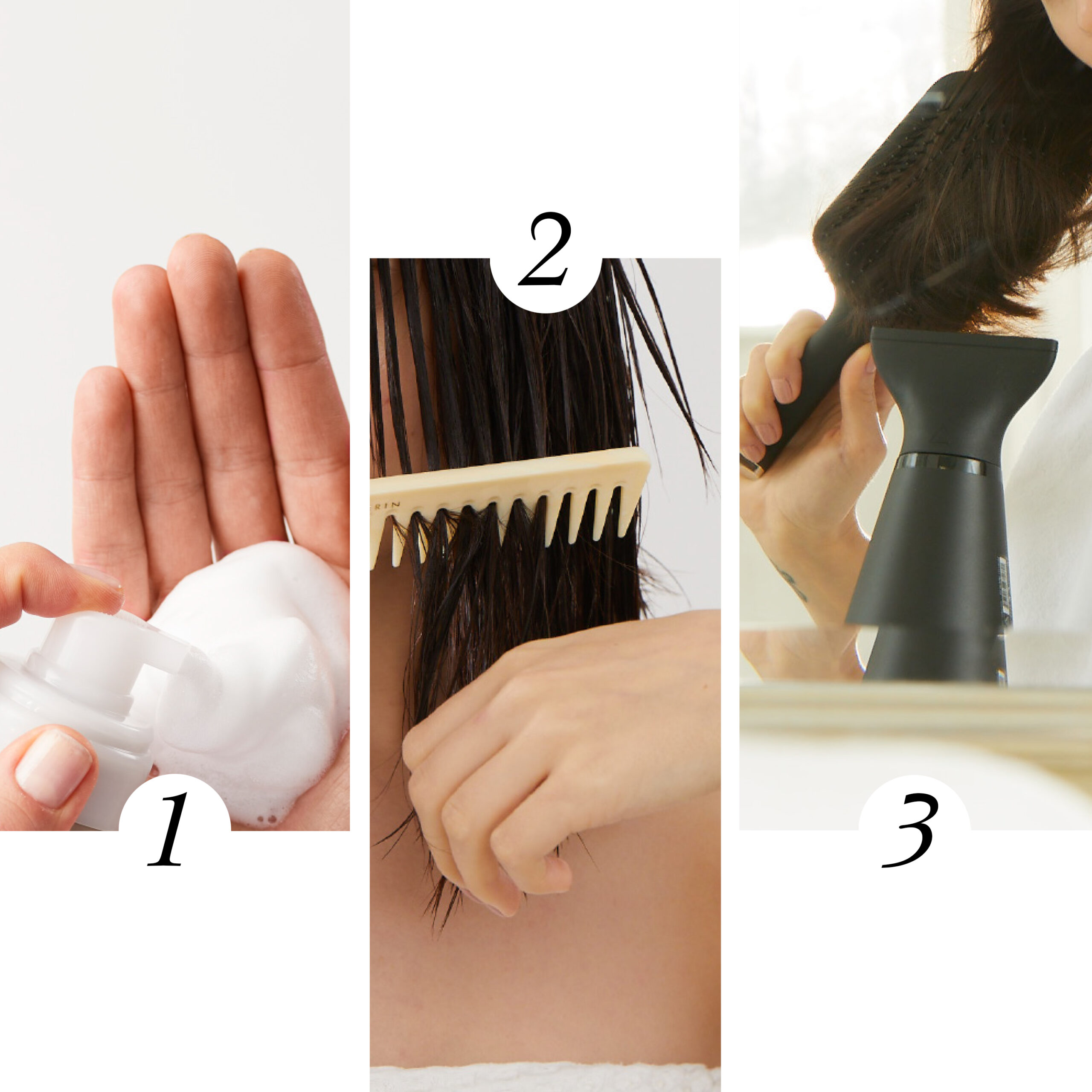 Nu agitaţi flaconul, acesta beneficiază de o pompă automată care distribuie produsul sub formă de spumă. În mod ideal, aplicaţi înainte de uscarea părului cu foehn. Aplicaţi 2-6 pompe de spumă pe păr, pieptănaţi și apoi uscaţi. Nu clătiţi.