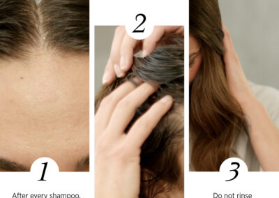 Utilizaţi după fiecare șamponare. Aplicaţi direct pe scalp pe părul uscat sau aproape uscat, în cinci secţiuni din faţă în spate. Acoperiţi întregul scalp. Masaţi ușor și nu clătiţi.