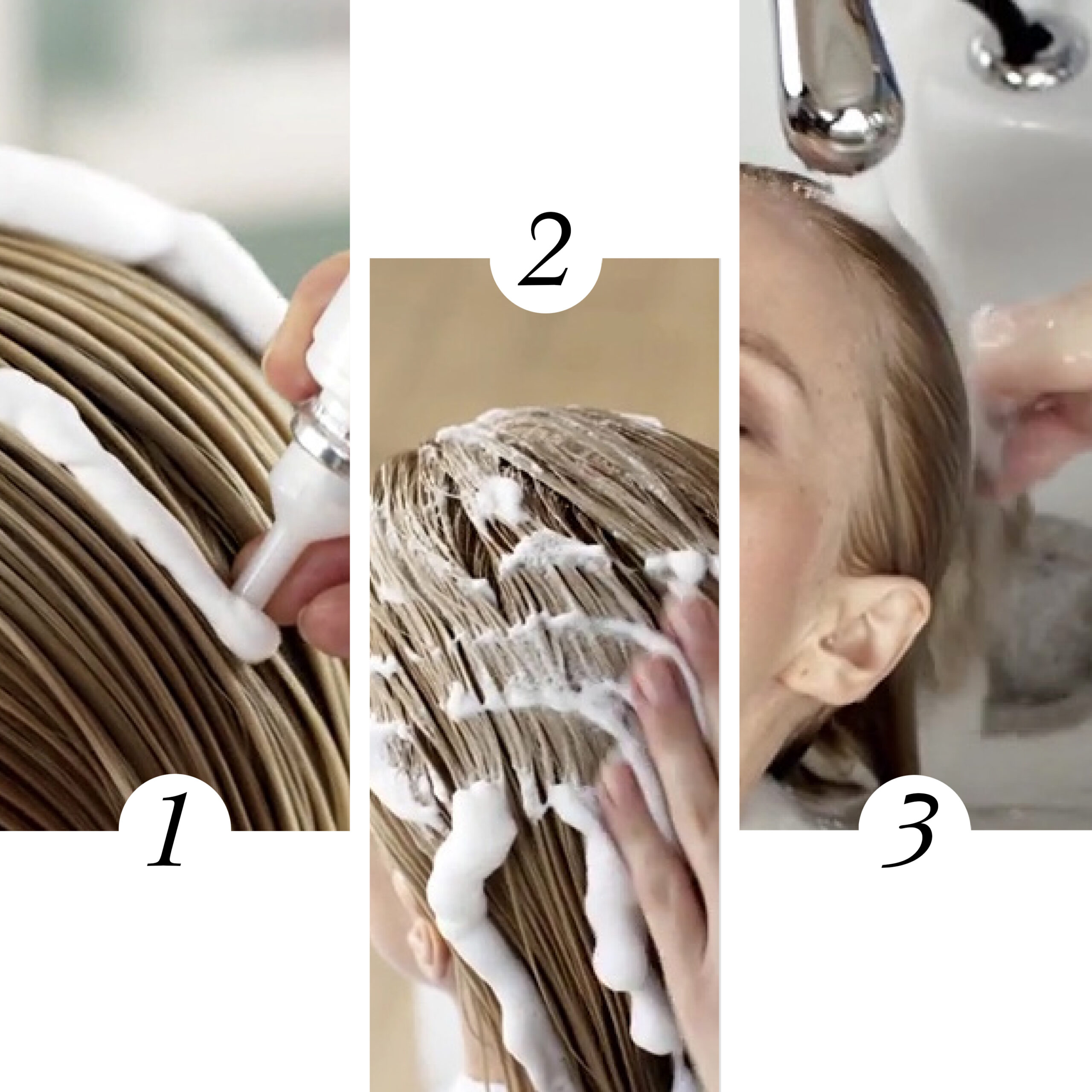 Șamponaţi părul, clătiţi și ștergeţi cu prosopul pentru a îndepărta excesul de apă. Agitaţi bine tubul, ţineţi dozatorul în jos și aplicaţi direct pe păr, în 5 secţiuni. Masaţi în păr până se absoarbe complet. Se lasă să acţioneze 5-10 minute. Emulsionaţi și clătiţi bine. Folosirea Climazon-ului sau a HairSpa-ului intensifică efectul.